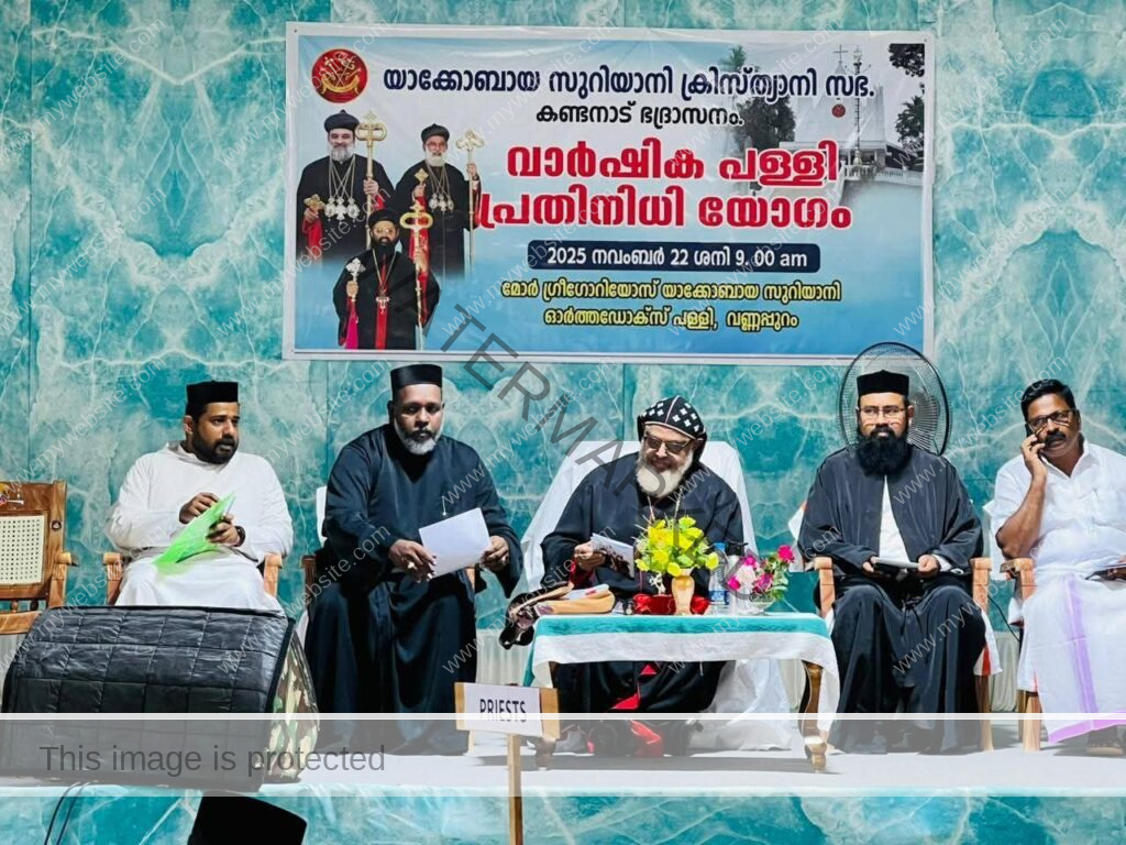 തൊടുപുഴ ● യാക്കോബായ സുറിയാനി ഓർത്തഡോക്സ് സഭയുടെ കണ്ടനാട് ഭദ്രാസന വാർഷിക പള്ളി പ്രതിനിധി യോഗം വണ്ണപ്പുറം മോർ ഗ്രീഗോറിയോസ് യാക്കോബായ സുറിയാനി ഓർത്തഡോക്സ് പള്ളിയിൽ നടന്നു.