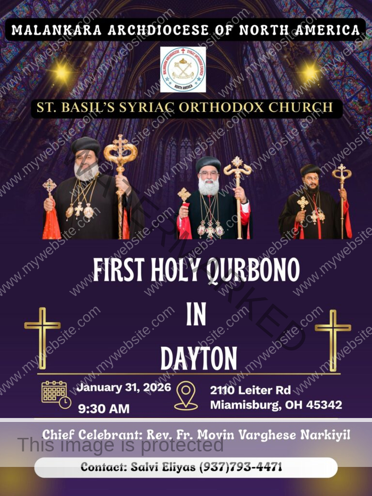 ഒഹായോ (നോർത്ത് അമേരിക്ക) ● നോർത്ത് അമേരിക്കൻ അതിഭദ്രാസനത്തിന് കീഴിൽ നോർത്ത് അമേരിക്കയിലെ സംസ്ഥാനമായ ഒഹായോയിലെ നഗരമായ ഡേറ്റണിൽ മലങ്കര സുറിയാനി ഓർത്തോഡോക്സ് സഭയുടെ വിശുദ്ധ കുർബ്ബാന ആരംഭിക്കുന്നു. നോർത്ത് അമേരിക്ക-കാനഡ അതിഭദ്രാസനാധിപൻ അഭിവന്ദ്യ മോർ തീത്തോസ് യൽദോ മെത്രാപ്പോലീത്തയുടെ അനുഗ്രഹീത കല്പനയാൽ ഫാ. മോവിൻ വർഗീസ് നർക്കിയിലിൻ്റെ നേതൃത്വത്തിലാണ് വിശുദ്ധ കുർബ്ബാന ആരംഭിക്കുന്നത്.