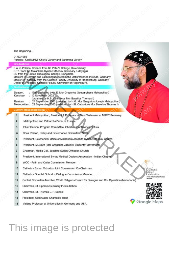 മികച്ച വചന പ്രഘോഷകനും എഴുത്തുകാരനും പണ്ഡിതനുമായ ഡോ. കുര്യാക്കോസ് മോർ തെയോഫിലോസ് മെത്രാപ്പോലീത്ത, സഭയുടെയും സമൂഹത്തിന്റെയും ഭാവിയെ ദീർഘവീക്ഷണത്തോടെ രൂപപ്പെടുത്തുന്ന സമുജ്ജ്വലമായ ഒരു സാന്നിധ്യമായി ഇന്നും തുടരുന്നു. ’തെയോഫിലോസ്’ എന്ന വാക്കിന്റെ അർത്ഥം പോലെ തന്നെ, ദൈവത്തിന്റെ സ്നേഹിതനായും ദൈവത്താൽ സ്നേഹിക്കപ്പെടുന്നവനായും ജീവിക്കുന്ന വ്യക്തിത്വമാണ് തിരുമേനിയുടേത്. തന്റെ നാമത്തെ അന്വർത്ഥമാക്കും വിധം, പ്രാർത്ഥനയിലൂടെയും കർമ്മനിരതമായ ശുശ്രൂഷയിലൂടെയും അദ്ദേഹം ആ ദൈവസ്നേഹം ലോകത്തിന് പങ്കുവെക്കുന്നു.