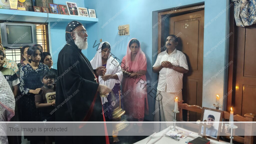 കറ്റാനം ● രണ്ടാഴ്ച മുമ്പ് വാഹനാപകടത്തിൽ പരിക്കേറ്റ് മരണപ്പെട്ട കട്ടച്ചിറ സെൻ്റ് മേരീസ് യാക്കോബായ സുറിയാനി പള്ളി ഇടവകാംഗവും, മദ്ബഹാ ശുശ്രൂഷകനും, വട്ടപ്പറമ്പിൽ ബിനു തങ്കച്ചൻ-ജോളി ദമ്പതികളുടെ മകനുമായ ബേസിൽ ബിനുവിന്റെ ഭവനത്തിൽ ശ്രേഷ്ഠ കാതോലിക്കായും മലങ്കര മെത്രാപ്പോലീത്തായുമായ ആബൂൻ മോർ ബസ്സേലിയോസ് ജോസഫ് ബാവ സന്ദർശിച്ച് പ്രാർത്ഥന നടത്തുകയും ബന്ധുമിത്രാദികളെ ആശ്വസിപ്പിക്കുകയും ചെയ്തു.